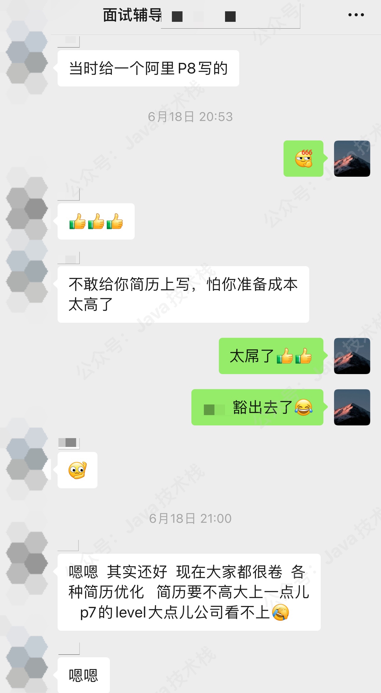 为了让他能多点面试机会,我们导师也拼了,除了深度优化,还包括我们当初给阿里 P8 优化的简历,有部分解决方案都用到他简历上去了,让他简历高了 N 个维度。
